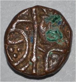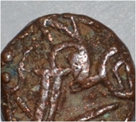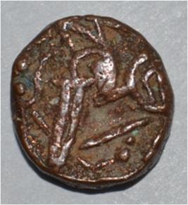 Obverse Horseman on the top holding penon. Reverse Couchant bull facing right and traces of legend on the top.
