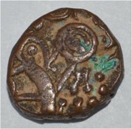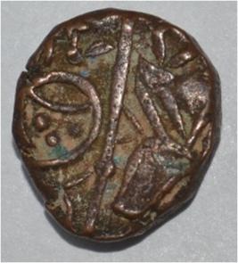 Obverse Horseman on the top holding penon. Reverse Couchant bull facing right and traces of legend on the top. Symbol on rump.