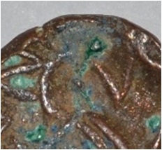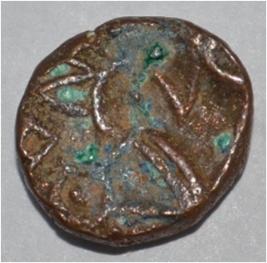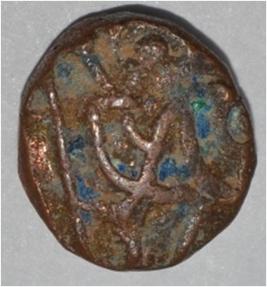 Obverse Horseman on the top holding penon. Reverse Couchant bull facing right and traces of legend on the top.