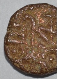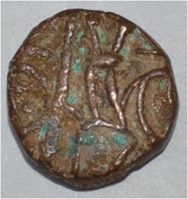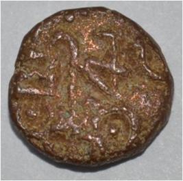 Obverse Horseman on the top holding penon. Reverse Couchant bull facing right and hump at the bottom. Traces of legend on the top.