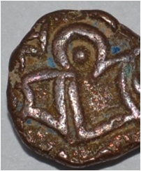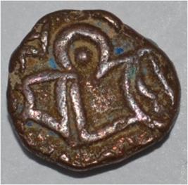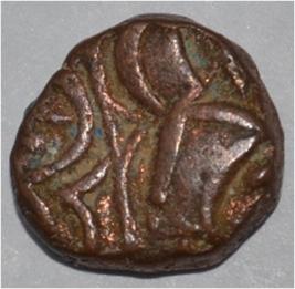 Obverse Horseman on the top holding penon. Reverse Couchant bull facing right. Trace of legend and hump on the top.