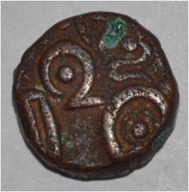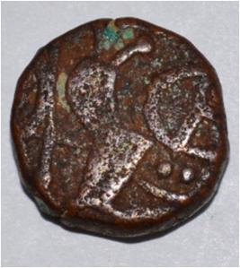 Obverse Horseman on the top holding penon. Reverse Couchant bull facing right and traces of legend on the top.