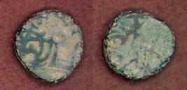 | Description / विवरण | Descrpn./Obv Recumbent bull facing left, wearing jhula (saddle cloth). Above, legend in Sarada script Sri Samantadeva (in cursive letters, mostly truncated and seen partially or off the flan). Descrpn./Rev Rider with lance on caparisoned horse facing right. |