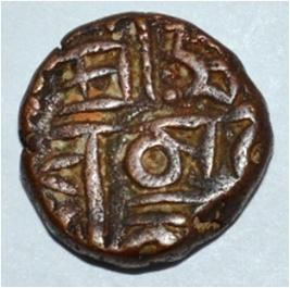 Obverse Horseman on the top. Reverse Traces of legend Sri Triloka Chandra