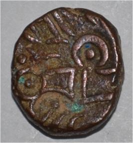 Obverse Horseman on the top holding penon. Reverse Couchant bull facing right and traces of legend on the top.