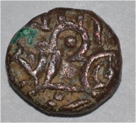 Obverse Horseman on the top holding penon. Reverse Couchant bull facing right and hump on the top of the coin.