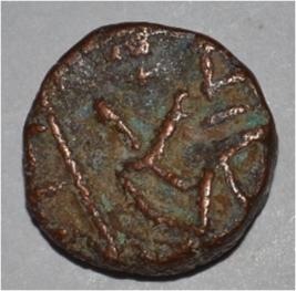 Obverse Horseman on the top holding penon. Reverse Couchant bull facing right and symbol on the rump.