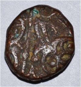 Obverse Horseman to the left. Man on the horseback. Flagpole at the back of horse. Reverse Couchant bull facing right.