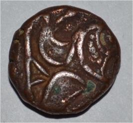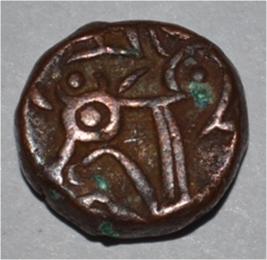 Obverse Horseman on the top holding penon. Reverse Couchant bull facing right and hump on the left.