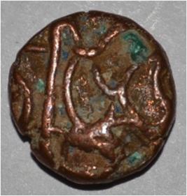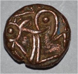 Obverse Horseman to the left. Man on the horseback. Flagpole at the back of horse. Reverse Couchant bull facing right and hump on the top.