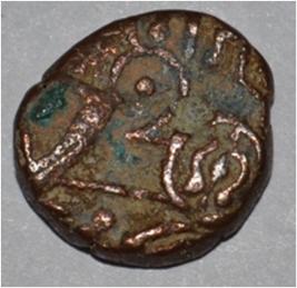 Obverse Horseman to right. Man on the horseback and flagpole at the back of horse. Reverse Couchant bull facing right and symbol on the rump.