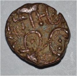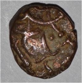 Obverse Horseman on the top holding penon. Reverse Couchant bull facing right and traces of legend on the top.