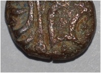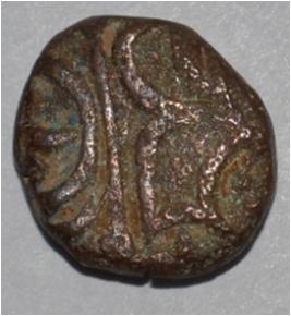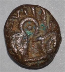 Coin in irregular shape. Obverse Horseman on the top holding penon. Reverse Couchant bull facing right and traces of legend on the top.