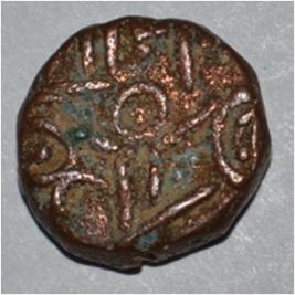 Obverse Horseman on the top holding penon. Reverse Couchant bull facing right and traces of legend on the top.