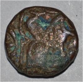 Obverse Horseman on the top holding penon. Reverse Couchant bull facing right and traces of legend on the top.