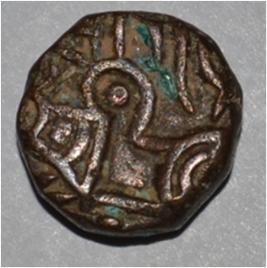 Obverse Horseman on the top holding penon. Reverse Couchant bull facing right and traces of legend on the top.