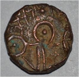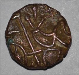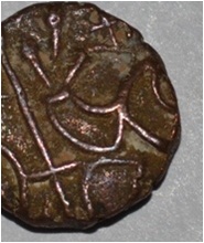 Obverse Horseman to the left. Man on the horseback and flagpole at the back of horse. Reverse Couchant bull facing right and traces of legend on the top.