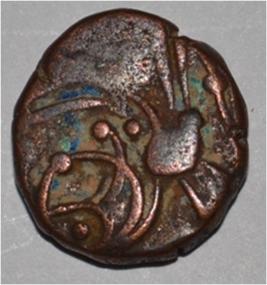 Obverse Horseman at the centre. Reverse Couchant bull facing right and traces of legend on the top.