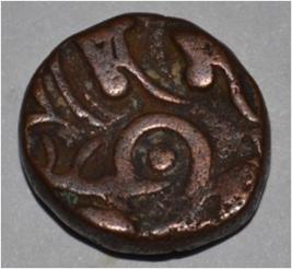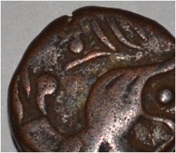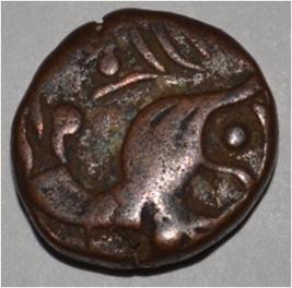 Obverse Horseman on the right. Reverse Couchant bull facing right and traces of legend on the top.