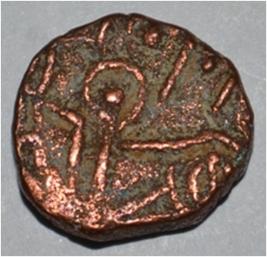 Obverse Horseman on the top holding penon. Reverse Couchant bull facing right and traces of legend on the top.