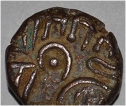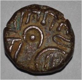 Obverse Horseman on the top holding penon. Reverse Couchant bull facing right and traces of legend on the top.