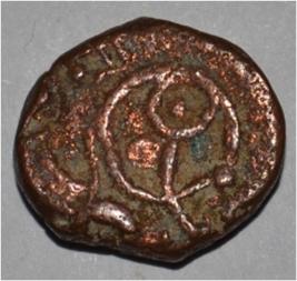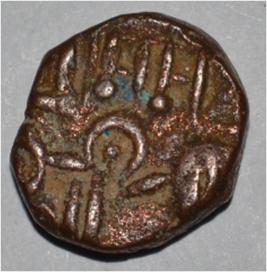 Obverse Horseman on the top. Reverse Couchant bull facing right and traces of legend on the top.