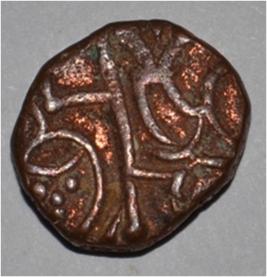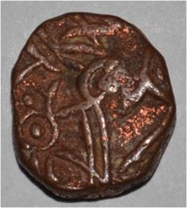 Coin in irregular shape. Obverse Horseman on the top holding penon. Reverse Couchant bull facing right and traces of legend on the top.