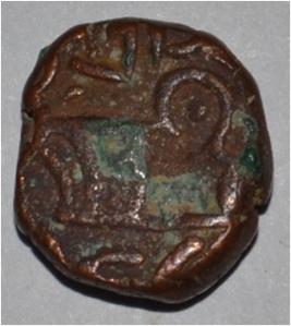 Obverse Horseman on the top holding penon. Reverse Couchant bull facing right and traces of legend on the top.
