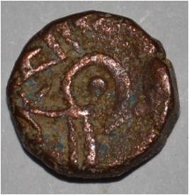 Obverse Only horse is visible. Reverse Couchant bull facing right and traces of legend on the top.