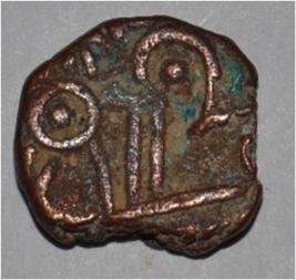 Obverse Horseman on the top. Reverse Couchant bull facing right and hump on the top.