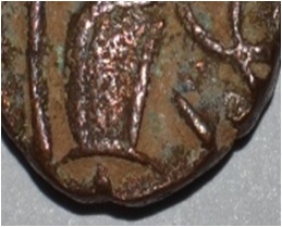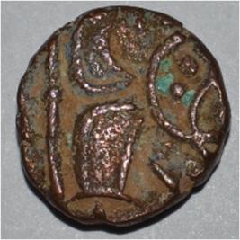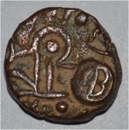 Obverse Horseman on the top holding penon. Reverse Couchant bull facing right and traces of legend on the top. Dots at the top and bottom.