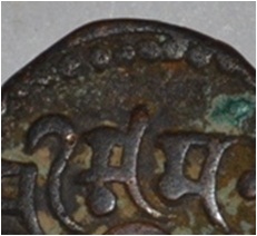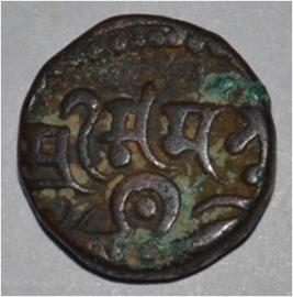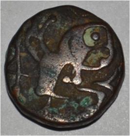 Obverse Horseman to left. Man on the back and flagpole at the back of horse. Reverse Couchant bull hump at the bottom and traces of legend at the centre.