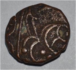Obverse Horseman on the top holding penon. Reverse Couchant bull facing right and traces of legend on the top.