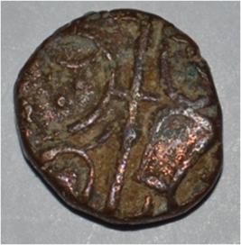 Obverse Horseman on the top holding penon. Reverse Couchant bull facing right and traces of legend on the top.