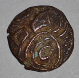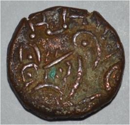 Obverse Horseman on the top holding penon. Reverse Couchant bull facing right and traces of legend on the top.