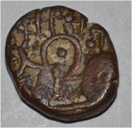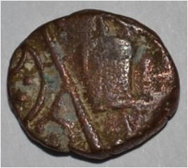 Obverse Horseman on the top holding penon. Reverse Couchant bull facing right and traces of legend on the top.