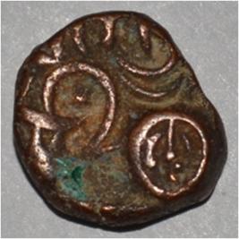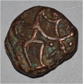 Obverse Horseman on the top holding penon. Reverse Couchant bull facing right and traces of legend on the top.