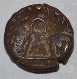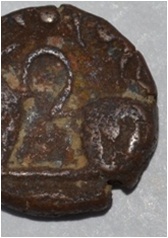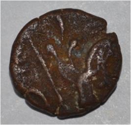 Obverse Horseman to the left. Man on the horseback and flagpole at the back of horse. Reverse Couchant bull facing right and traces of legend on the top.