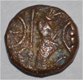 Obverse Horseman on the top holding penon. Reverse Couchant bull facing right and traces of legend on the top.
