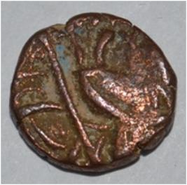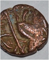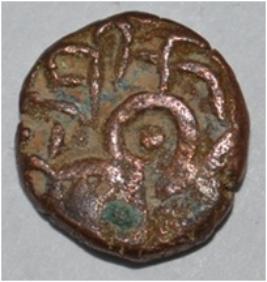 Obverse Horseman on the top holding penon. Reverse Couchant bull facing right and traces of legend on the top.
