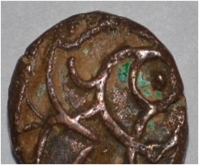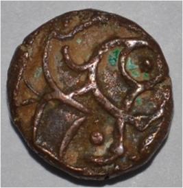 Obverse Horseman on the top. Reverse Couchant bull facing right and traces of legend on the top.