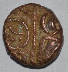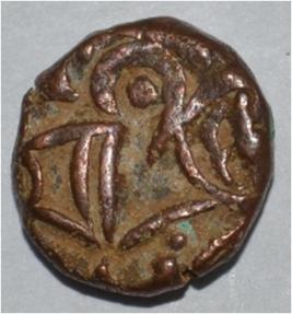 Obverse Horseman to the left. Man on the horseback and flagpole at the back of horse. Reverse Couchant bull facing right and traces of legend on the top.