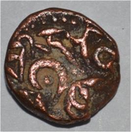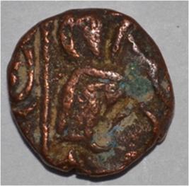 Obverse Horseman on the top holding penon. Reverse Couchant bull facing right and traces of legend on the top.