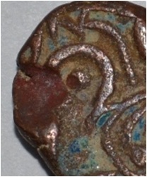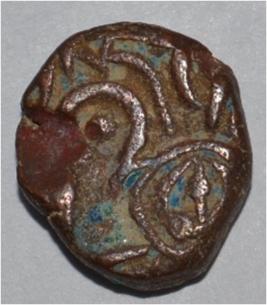 Obverse Horseman on the top holding penon. Reverse Couchant bull facing right and traces of legend on the top.