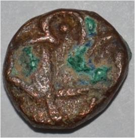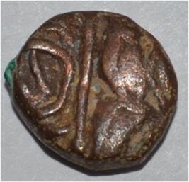 Obverse Horseman on the top holding penon. Reverse Couchant bull facing right and traces of legend on the top.