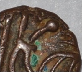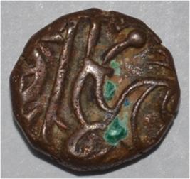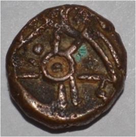 Obverse Horseman to the left. Man on the horse back and flagpole at the back of horse. Reverse Couchant bull facing right and traces of legend on the top.