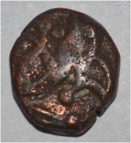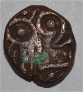 Obverse Horseman on the top. Reverse Couchant bull facing right and hump on the top left.