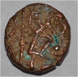 Obverse Horseman on the top holding penon. Reverse Couchant bull facing right and hump on the top.
