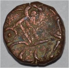 Obverse Horseman on the top holding penon. Reverse Couchant bull facing right and hump on the top.