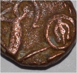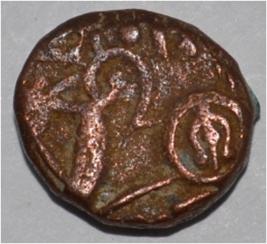 Obverse Horseman on the top holding penon. Reverse Couchant bull facing right and traces of legend on the top.